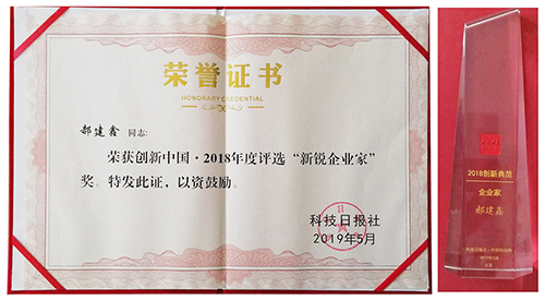 “创新中国·2018年度新锐企业家”荣誉证书