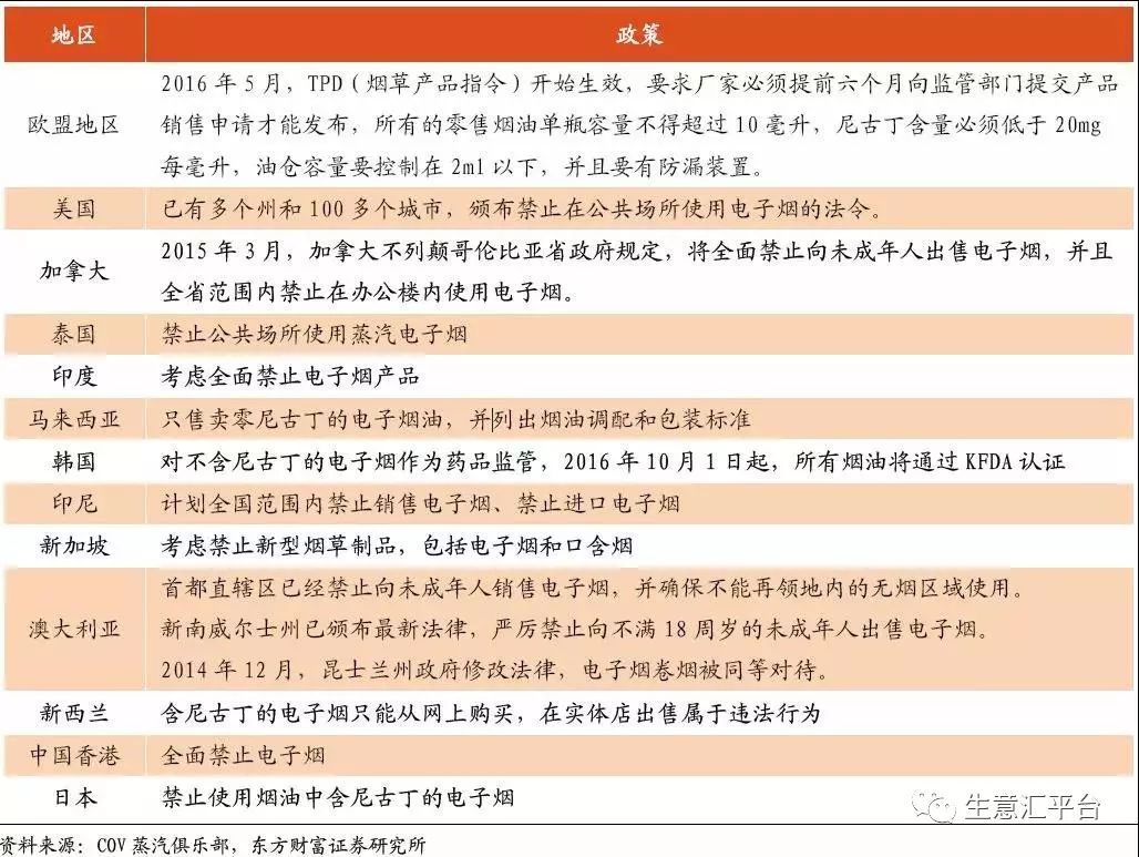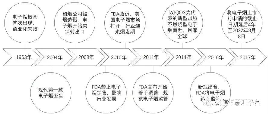 在美国,由于对健康的影响等不确定因素,监管部门对电子烟保持了一定的警惕,2008-2010年,FDA 禁止了Sottrea,Inc.等制造商进口、销售电子烟,对于电子烟的发展造成了一定的影响。2010 年,美国上诉法院判定FDA 针对电子烟销售的禁令败诉,至此美国电子烟市场打开,并迅速成长为全球第一大电子烟市场,传统烟草巨头也纷纷开始布局。