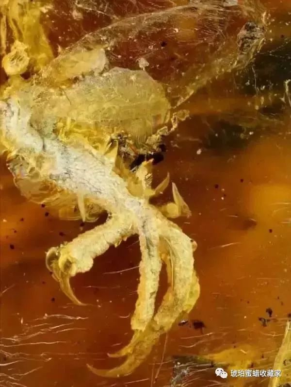 在这方面缅甸琥珀也确实比较争气,就这两年来就在其中发现了带羽毛的恐龙尾巴,鸟的爪子等,对科研意义重大的发现。