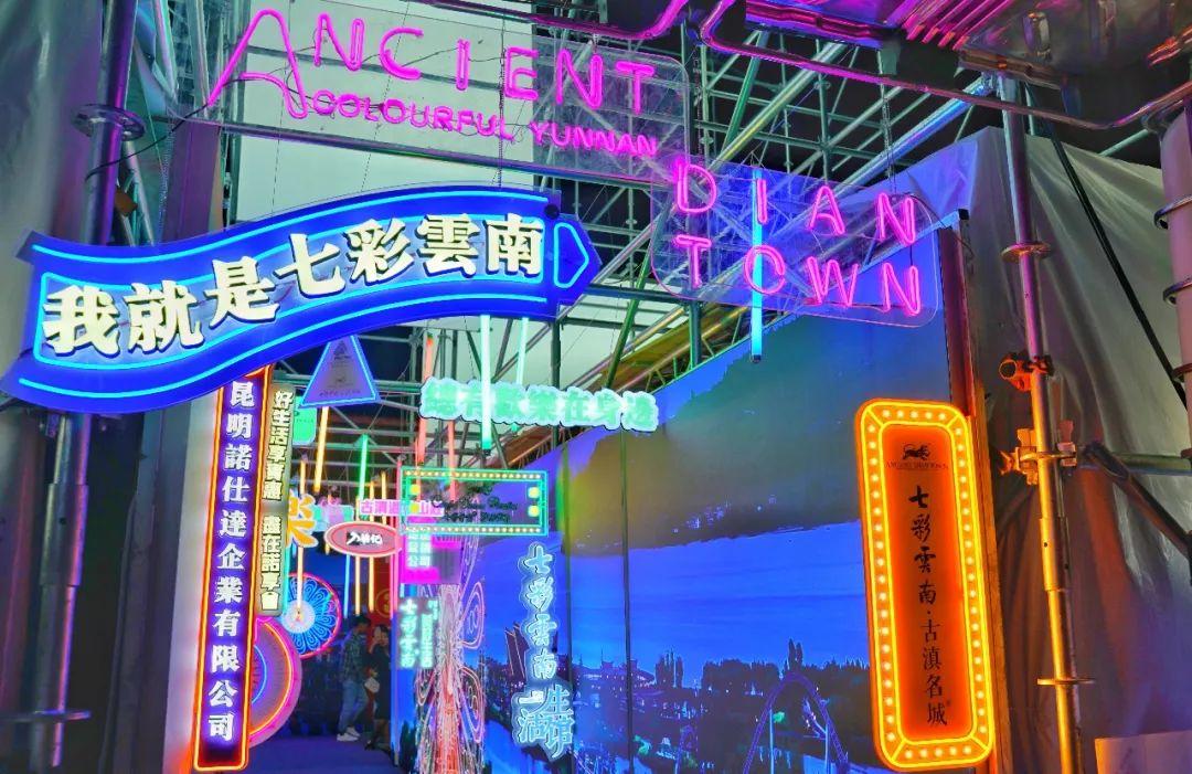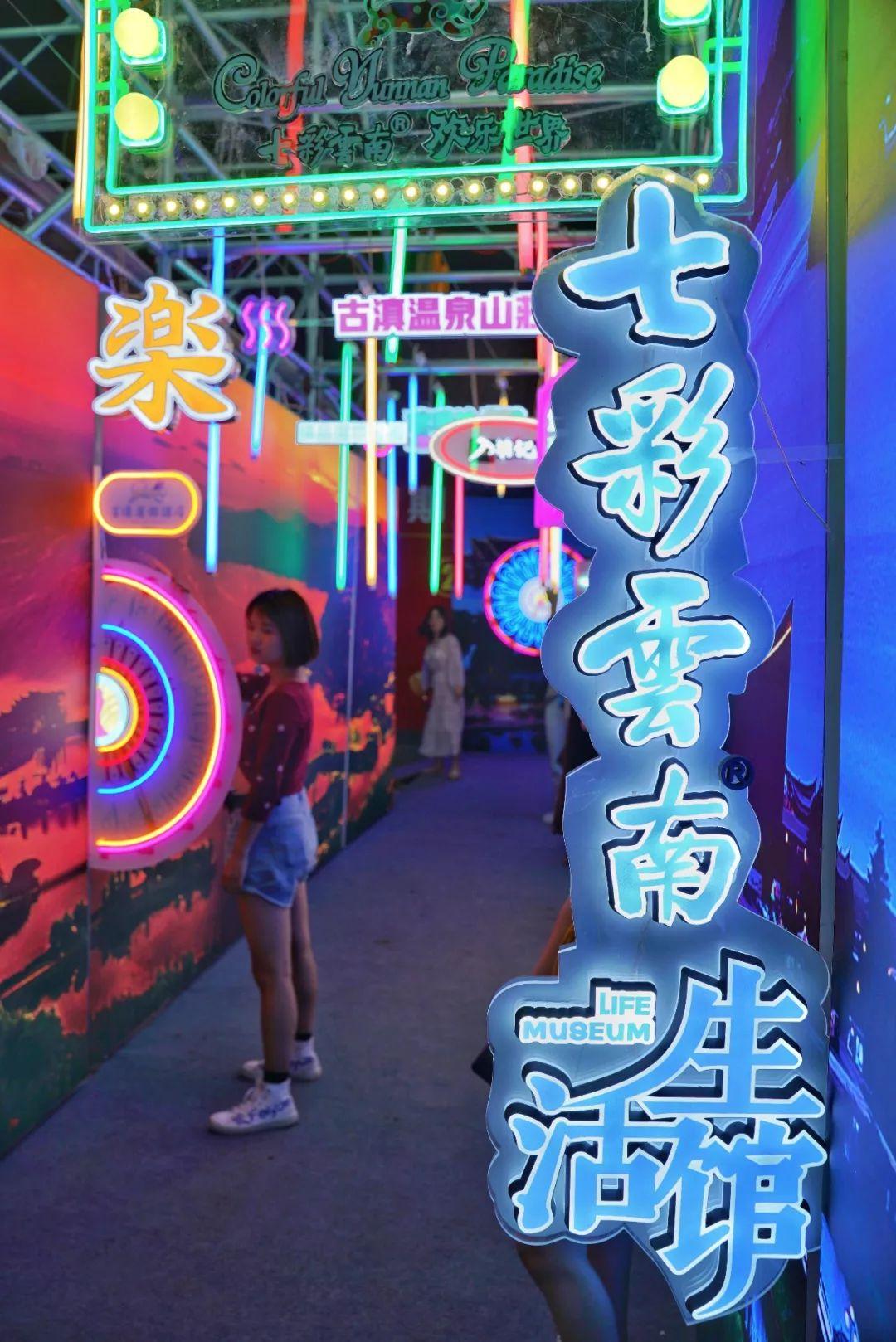 代表着七彩云南·古滇名城生活美学无限可能的百平空间靠近湿地怡心园,是一条霓虹闪烁的百米长街,当灯光亮起之时,就像90年代香港电影里的街区,营造了一种奇异又美妙的氛围。