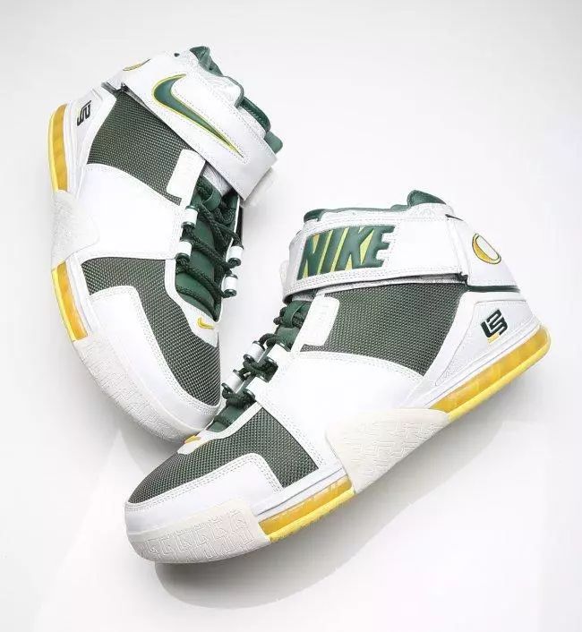 加入了魔术绑带的设计,提升了整双球鞋的包裹性,Lebron2的鞋面由皮革与军用织物拼接组合而成,鞋面线条硬朗且拥有极强的韧性。