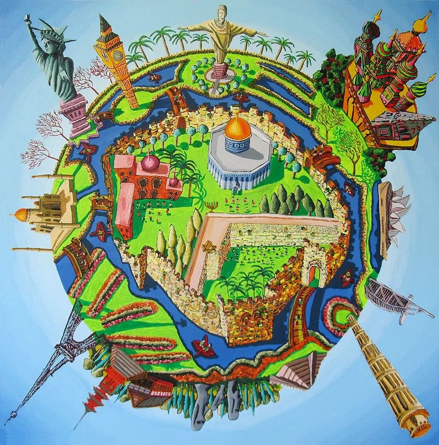 拉斐尔·佩雷斯《耶路撒冷世界中心》(Jerusalem center of the world),丙烯画,180×180cm,2013年