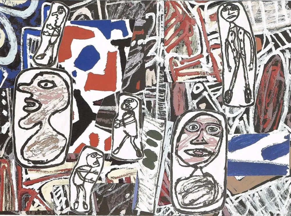 想要打破传统之美的限制的还有让·杜布菲(Jean Dubuffet),其唯心主义美学方法接纳了所谓的“低级艺术”,摒弃了传统之美的标准。他还弃用透视概念,倾向于更真实、直接的形象塑造方法——二维空间表现。这也是他的作品看起来与儿童画有相似之处的原因——二者都会用到平面而直白的表达方式。