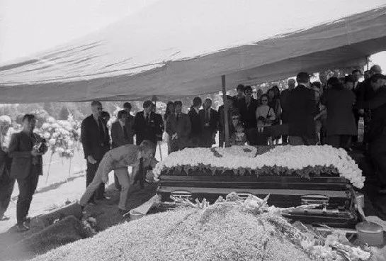香港葬礼吊唁活动结束后,李小龙灵柩将运往美国西雅图下葬。图为吊唁结束后,人们合上李小龙棺材,很快灵柩将被送往美国西雅图。美国著名拳王阿里曾高度评价李小龙,“李小龙是个伟大的人。他是那一领域中最为杰出的。我希望我能遇到他,因为我的确喜欢他的武术。他超越了他的时代。”
