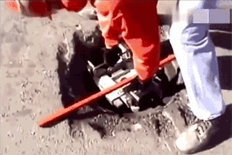 机器刨开井盖周围,