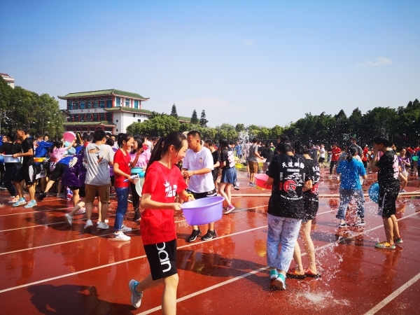 该校每年的5月15日左右,会在学校操场举行“泼水节”,该活动已举办八届。高三年级22个班级共计1200余人,在操场上尽情地享受着泼水带来的乐趣,释放着自己的心情,以放松的心情迎接着即将到来的高考。活动目的旨在帮助高三学生舒缓高考压力,放松心情,振奋精神,调节学生的精神状态,让他们以良好的精神面貌和放松的心情去备战高考。