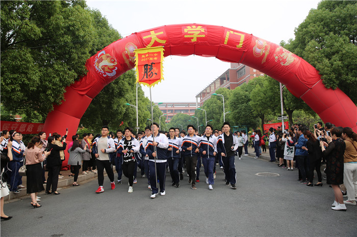 该校在每年的6月1日左右,举办高三毕业典礼,在高一、高二学弟学妹的掌声鲜花中、夹道欢迎下,全体高三学子以饱满的激情、昂扬的斗志、铿锵有力的口号、整齐划一的步伐,跑步跨进“大学门”。以这种形式让学生共同见证美好时刻,同时,也家长老师和学北学妹的祝福中缓解压力。