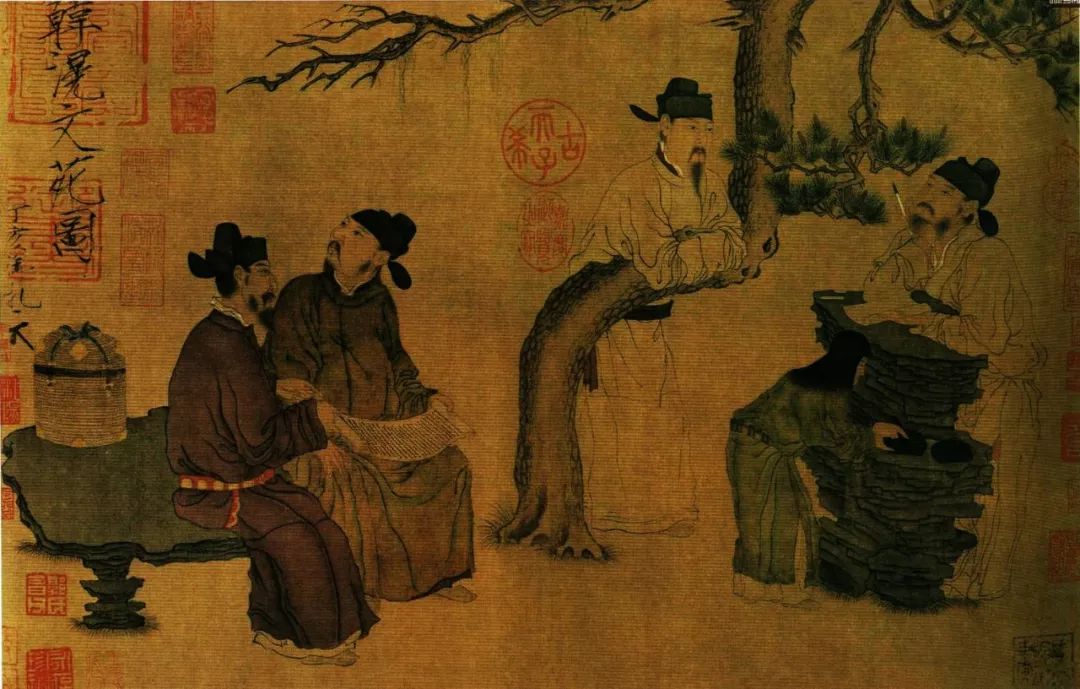 “社”的含义起初与宗教信仰有关。《国语•鲁语上》即云:“共工氏之伯九有也,其子曰后土,能平九土,故祀以为社。” 这里的“社”即“土地之神”。“社”常常指代祭祀的场所、活动等,也引申为节日、古代基层行政单位等含义。另外,社也指自发组织的民间团体,如周密《武林旧事•社会》中提到的绯绿社、齐云社、遏云社。顾炎武所言:“后人聚徒结会亦谓之社。”可以发现“社”的含义往往与集体活动相关。而较早的文人结社迹象见于中唐,大历十才子中出现了结社相关的字句,司空曙《岁暮怀崔峒、耿湋》云:“洛阳旧社各东西,楚国游人不相识。”司空曙、崔峒、耿湋即“十才子”中人。中唐时期还出现了诗酒唱和、谈禅娱老的“香山九老会”,由当时的著名诗人白居易所创。之后文人结社日益多见,到了宋元时期,诗社大量出现,明代达到了巅峰,“西湖八社”就是出现于明代结社浪潮之中。