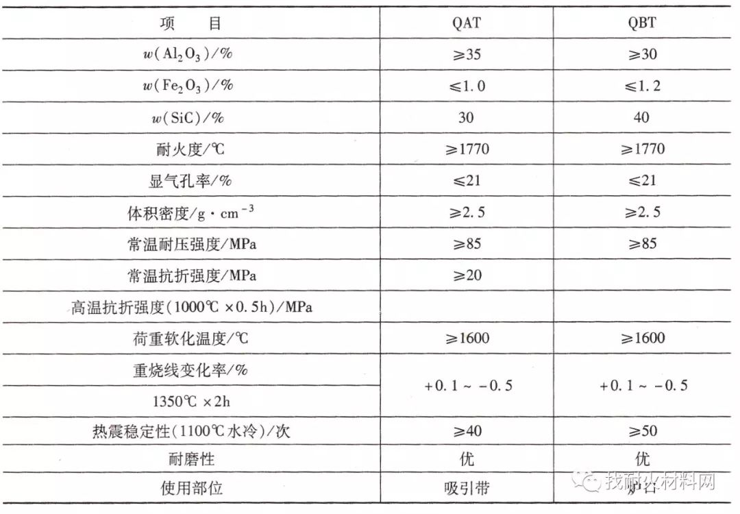 21世纪初,鞍山焦耐研究设计院,武汉科技大学,山东鲁耐窑业公司等单位,曾对干熄焦用耐火材料进行攻关,主要材质是莫来石-碳化硅质。莫来石线膨胀小(a=5.3x10-6/℃),而碳化硅热导率大(1000℃时,λ=38.49 W/(m·K)),有利于材料的抗热震,同时,碳化硅硬度大,有利于提高材料的强度,显然选材对路。目前除山东鲁耐窑业公司生产外,江苏宜兴地区不少厂家也在生产。这里特别指出,红柱石矿物原料具有抗热震的优良特性,制作莫来石-碳化硅砖少不了。