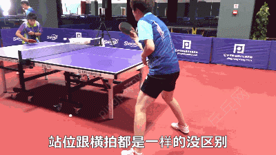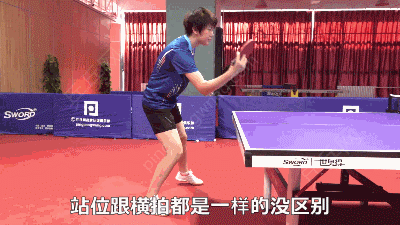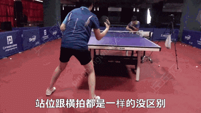 然后站位方面跟横拍都是一样的,都没区别,站位要么就双脚站平,要不就左脚往前一点点,唯一不要出现的误区就是许多人喜欢侧着打球,他的肩膀跟身体是侧面冲着台子,然后再加上可能会有些手腕别的动作,或者是大家很可能看国际大赛比较多,许昕是会这样拉的,王皓也是会这样拉的,当然那个要退到中台并且有上旋的动作基础之后才能去拉出来那种下旋球,基础的动作的话还是建议大家左脚稍微再前一点,或者双脚站平都可以,然后好好的把反手攻基本功训练踏实了。