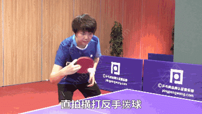 现在让唐瑶跟我们讲一下,直拍的反手横打即反手拨球。反手横打很多朋友会觉得别手腕,好像是我接触过的被问到最多的问题,然后手腕是放松的,一定不要刻意的去把手腕掰过来,你的拍面最重要的是冲前冲侧,基本上冲到对方反手位的斜线上,然后你这个手腕就正常的下垂就可以了,然后往前拨出去,主要是前臂的动作比较多,很多人也会误以为反手横打都是手腕的动作为主,只要用前臂就可以了,你手腕如果太多的话反倒会让球失误,然后包括加摩擦的话也是用前臂的力量多,都是用前臂为主。