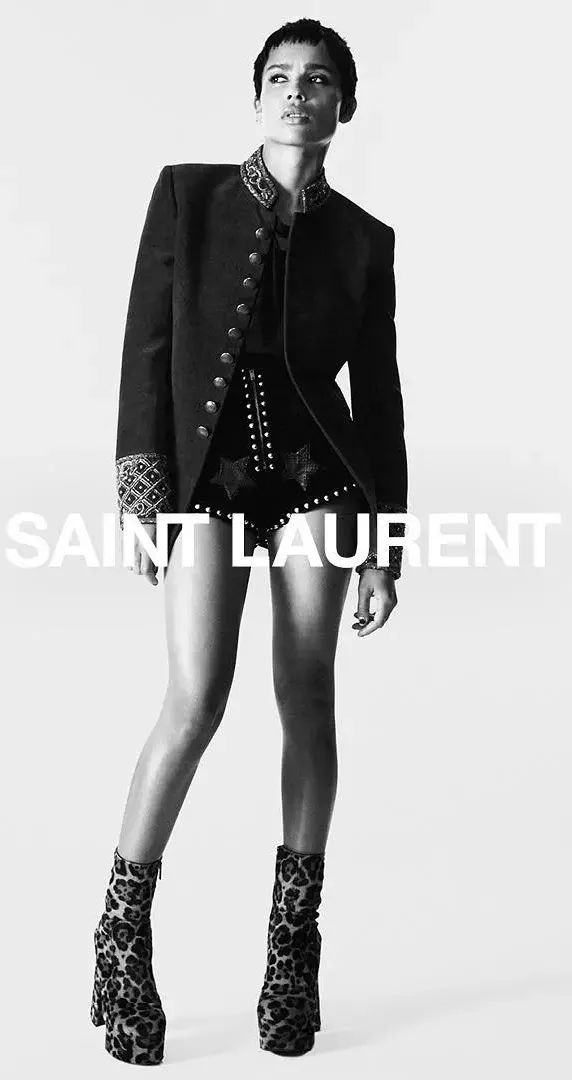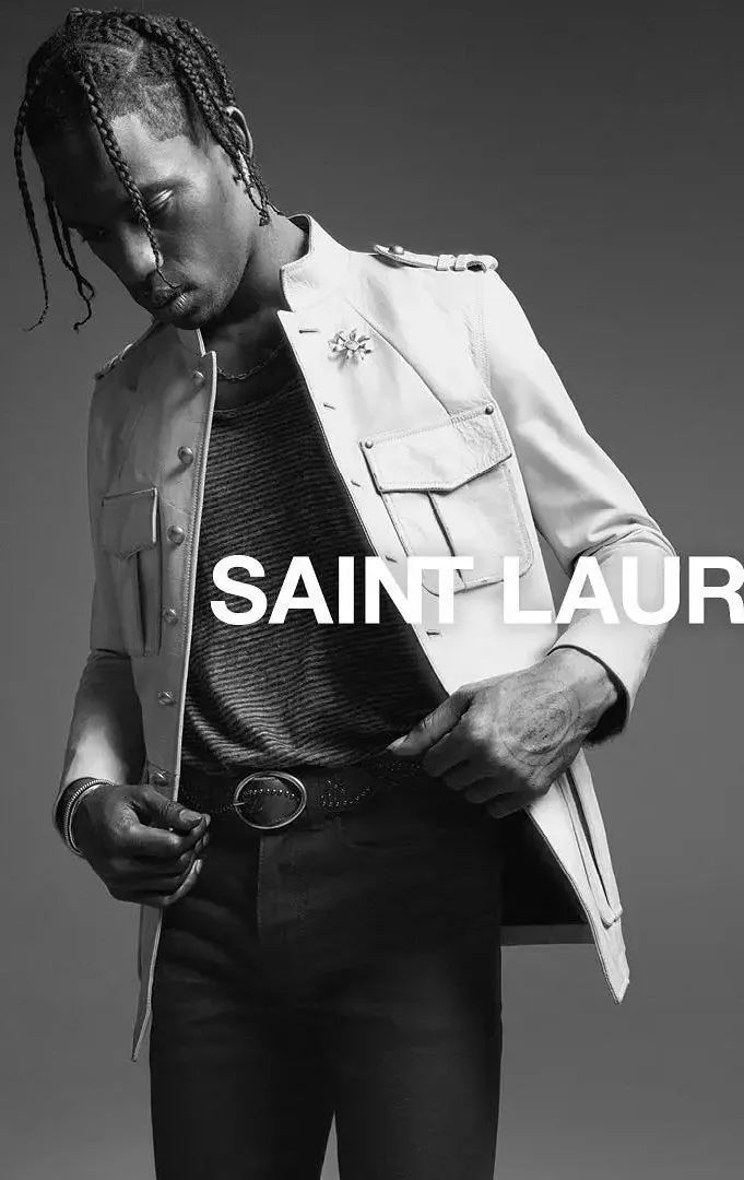 在Hedi统治的Saint Laurent年代,Diversity几乎是不存在的,Saint Laurent的模特、品牌缪斯都是清一色的白人。Anthony Vaccarello上任后迅速改变了这种局面,非洲裔美国女演员Zoë Isabella Kravitz为他在Saint Laurent的创作带来了无限的灵感。与此同时,黑人说唱歌手Travis Scott也作为代言人登上了Saint Laurent的男装广告大片。