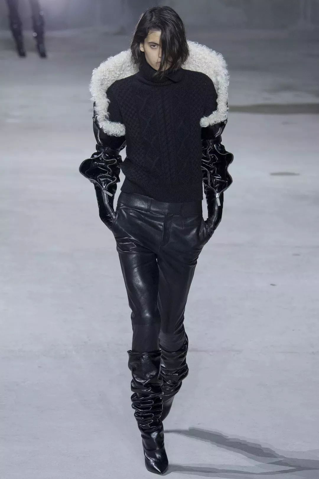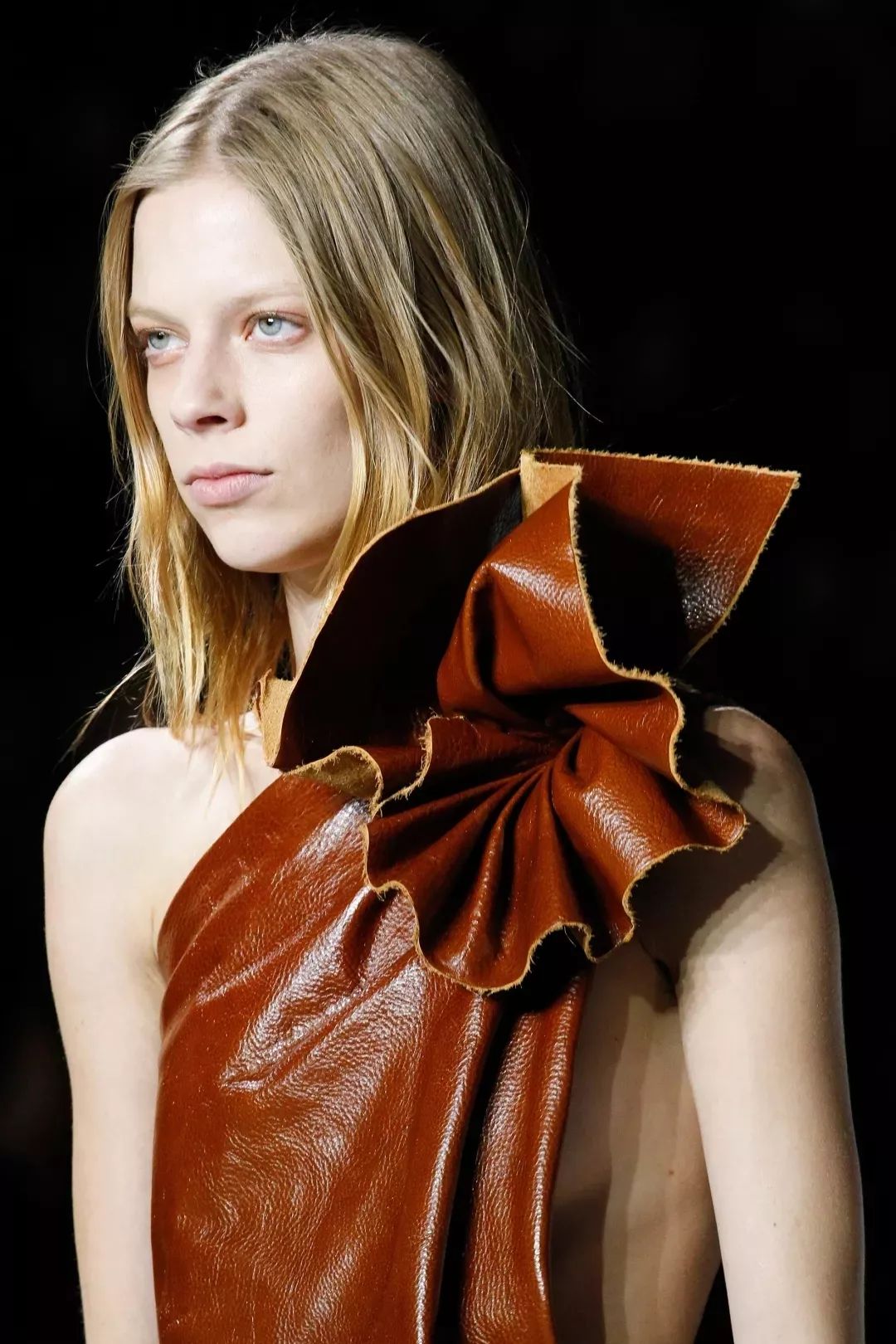 将所谓“实用性”完全抛之脑后,这件将羊腿袖和飞行员手套相结合诞生的“手套背心”可能是我近五年见到过最浮夸最性感的设计了。