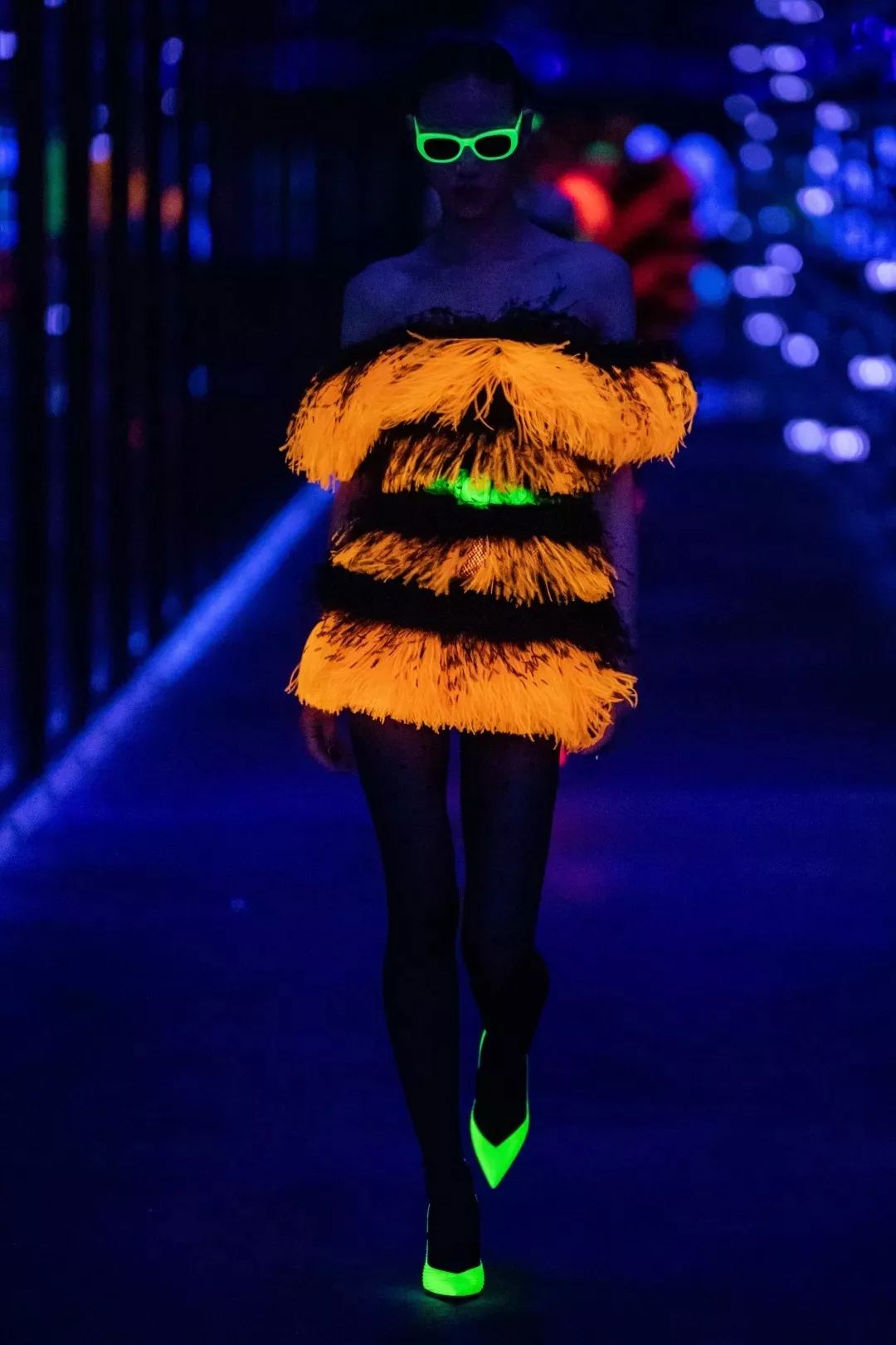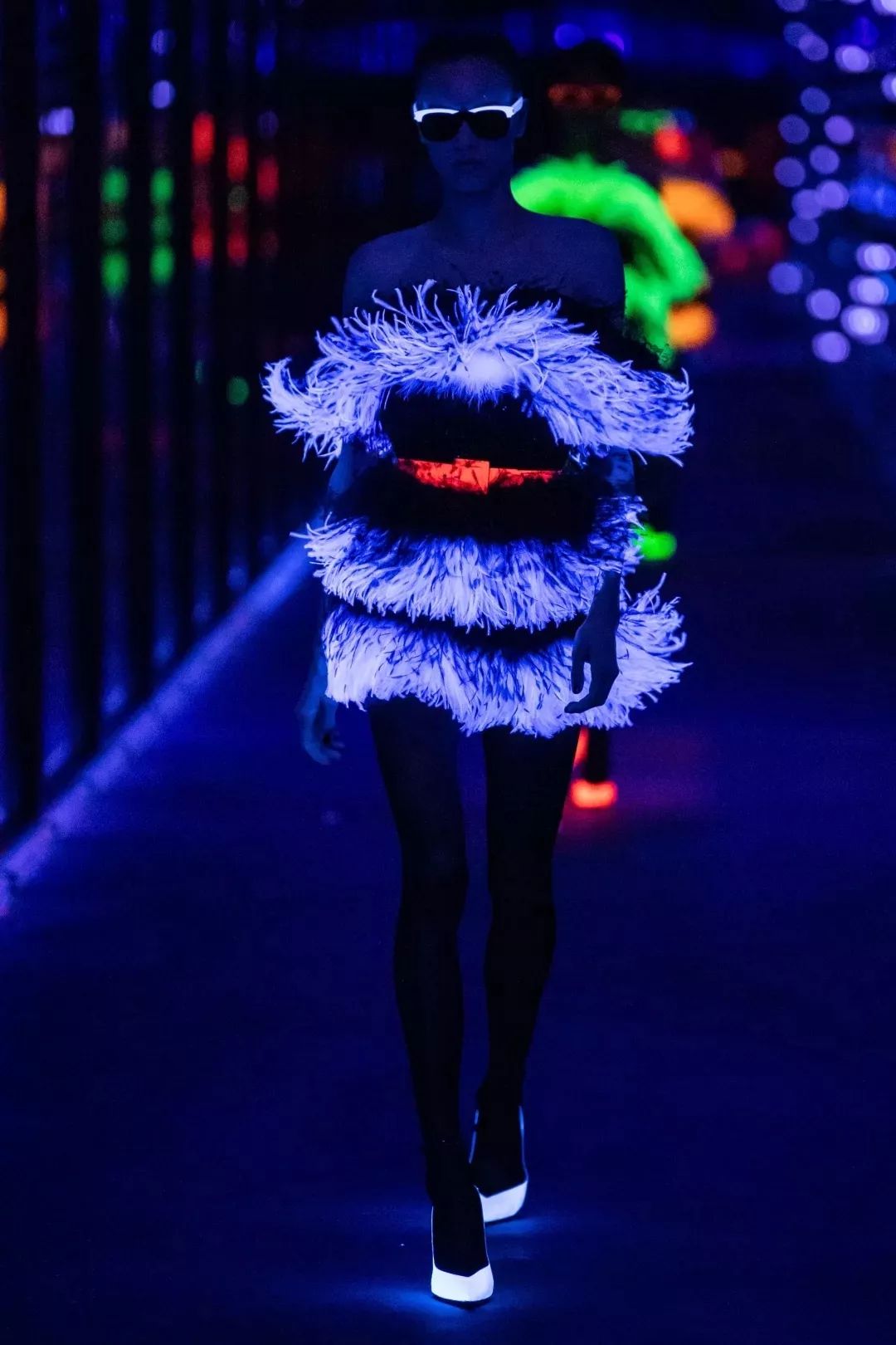 2019秋冬时装秀进行到一半灯光突然暗了下来,随后Anthony Vaccarello毫无预警地带我们进入了霓虹的天堂。这大概就是时装与科技的完美结合吧。