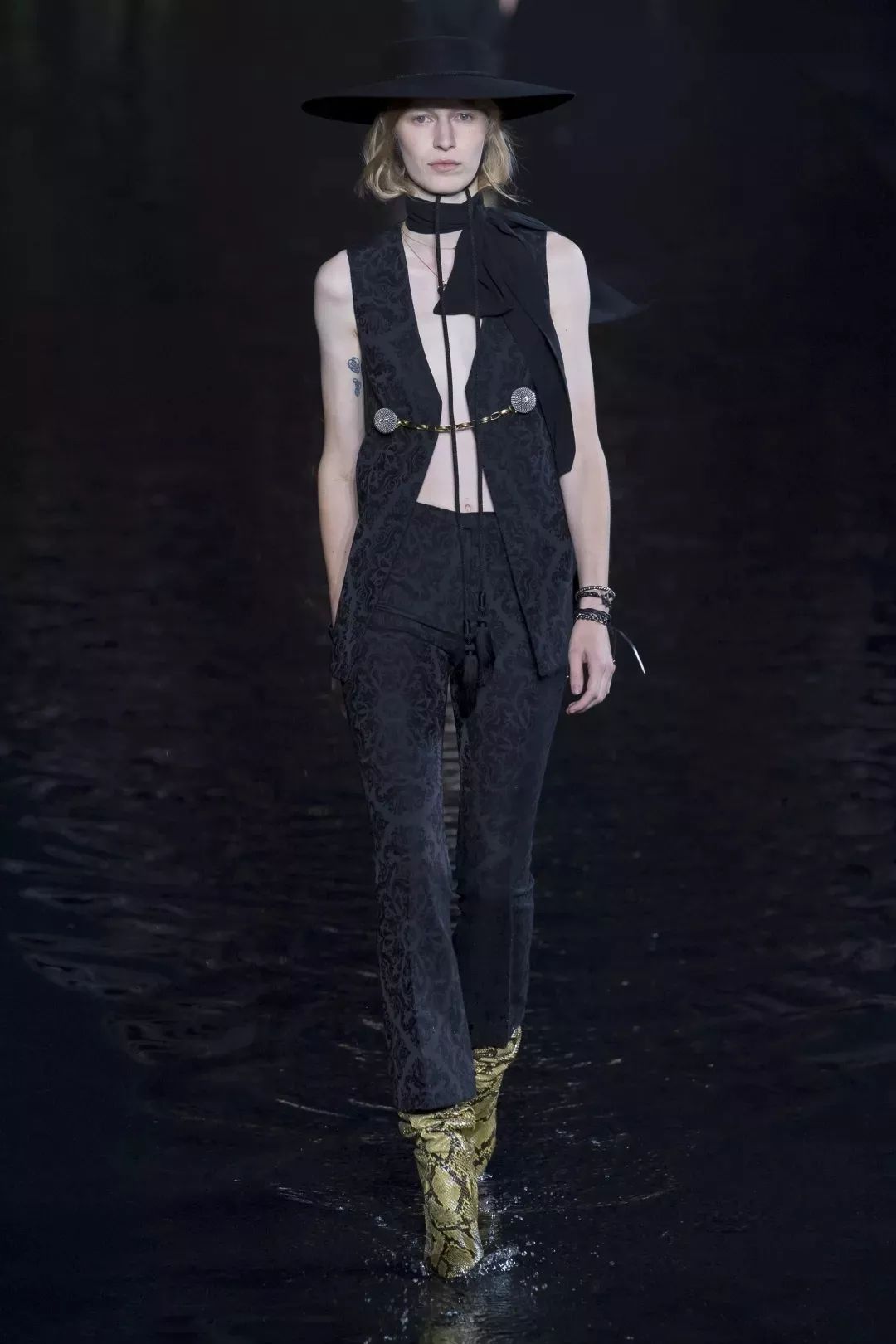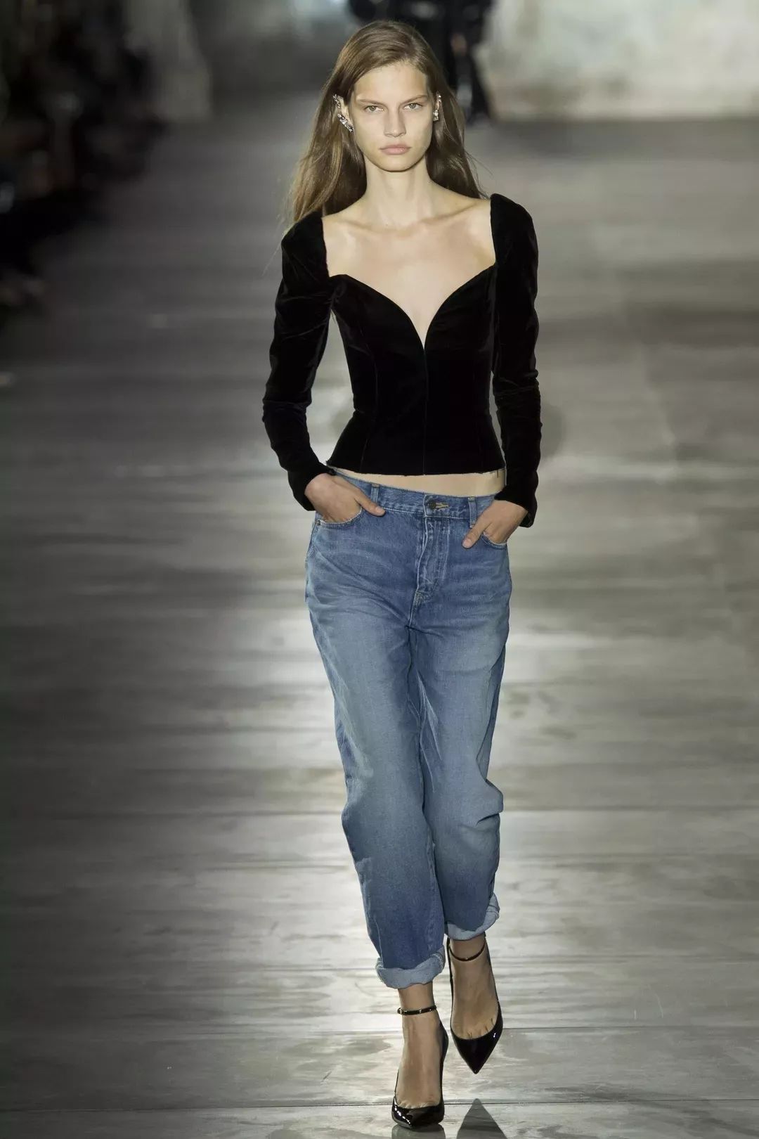 Anthony Vaccarello的Saint Laurent游走在高定与街头之间,牛仔的加入展现了Saint Laurent女孩的多面性。