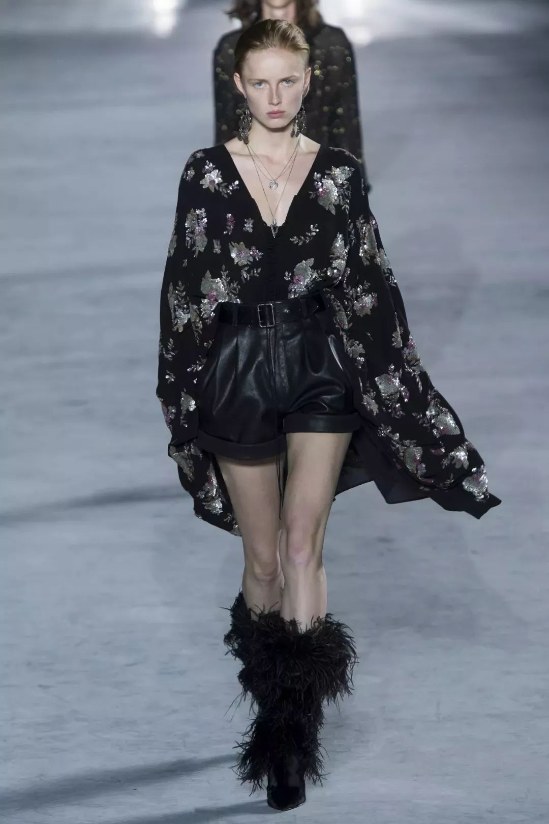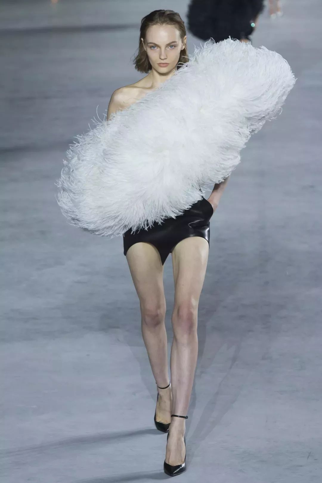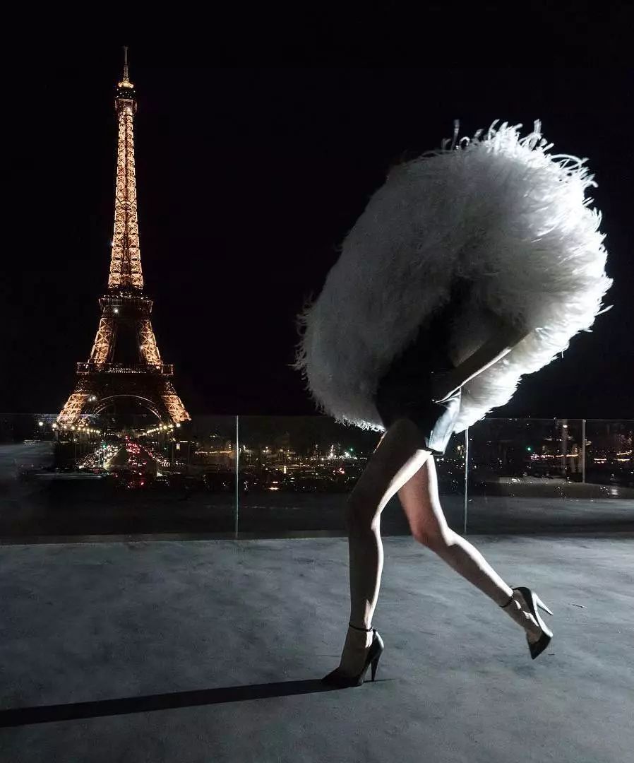 随风摇曳的鸵鸟毛已然成为Saint Laurent by Anthony Vaccarello的标志性元素,这难道不就是将Extravagance演绎到极致的坎普精神吗?