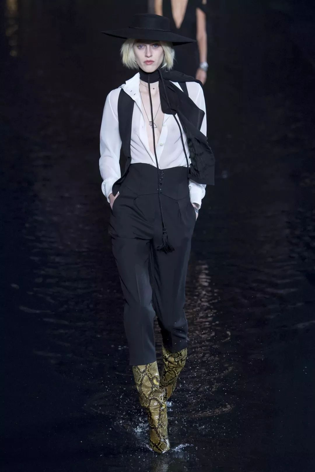 很多女人迷恋ysl,是因为他的衣服从来不是困住女人的牢笼。相反,ysl从创办以来就致力于为女人制造能帮她们实现自我解放的武器。2019春夏时装秀上,Vaccarello没有为了追求极致的曲线继续收紧Le Smoking的廓形,身穿吸烟装的模特衣衫凌乱不整。她们想要风格,亦追求舒适——如果一位衣衫不整的男士所散发的荷尔蒙是合理的,那么她们也可以。