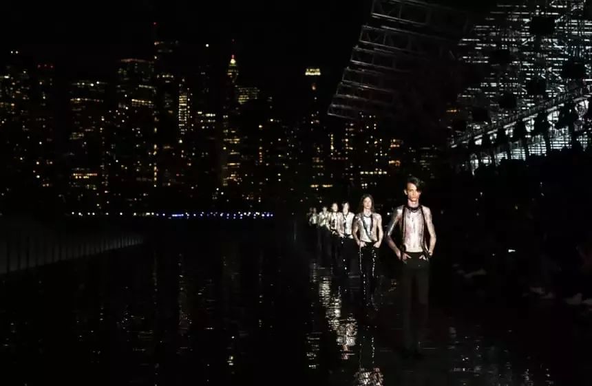相信大家对YSL大名鼎鼎的Opium香水已经不陌生了,但很多人不知道的是它在面世之初由于其争议性的名字遭到了多个国家的抵制。面对舆论攻击,Yves Saint Laurent不仅没有急着公关,反而在纽约港的一艘船上为Opium香水举办了一场奢靡又浮华的启动派对。40年后,Anthony Vaccarello为了向经典的Opium香水致敬,将他为Saint Laurent打造的第一场男装秀"都市牛仔”带到了与曼哈顿一河之隔的新泽西州自由公园举办。