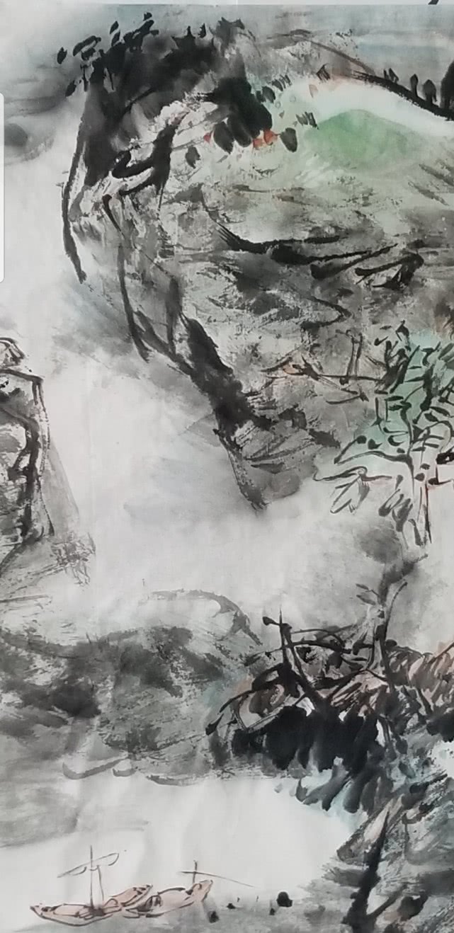 画家王艾石此幅作品的风格传统,又有别于传统。核心是用笔非常抽象,线条随心性强,整幅画面富含符号感,似树似草似甲骨文字。画境出自中国易经文化思想,气韵空灵通畅,无有关系微妙,阴阳对比和谐。是一幅艺术价值极高的山水作品。