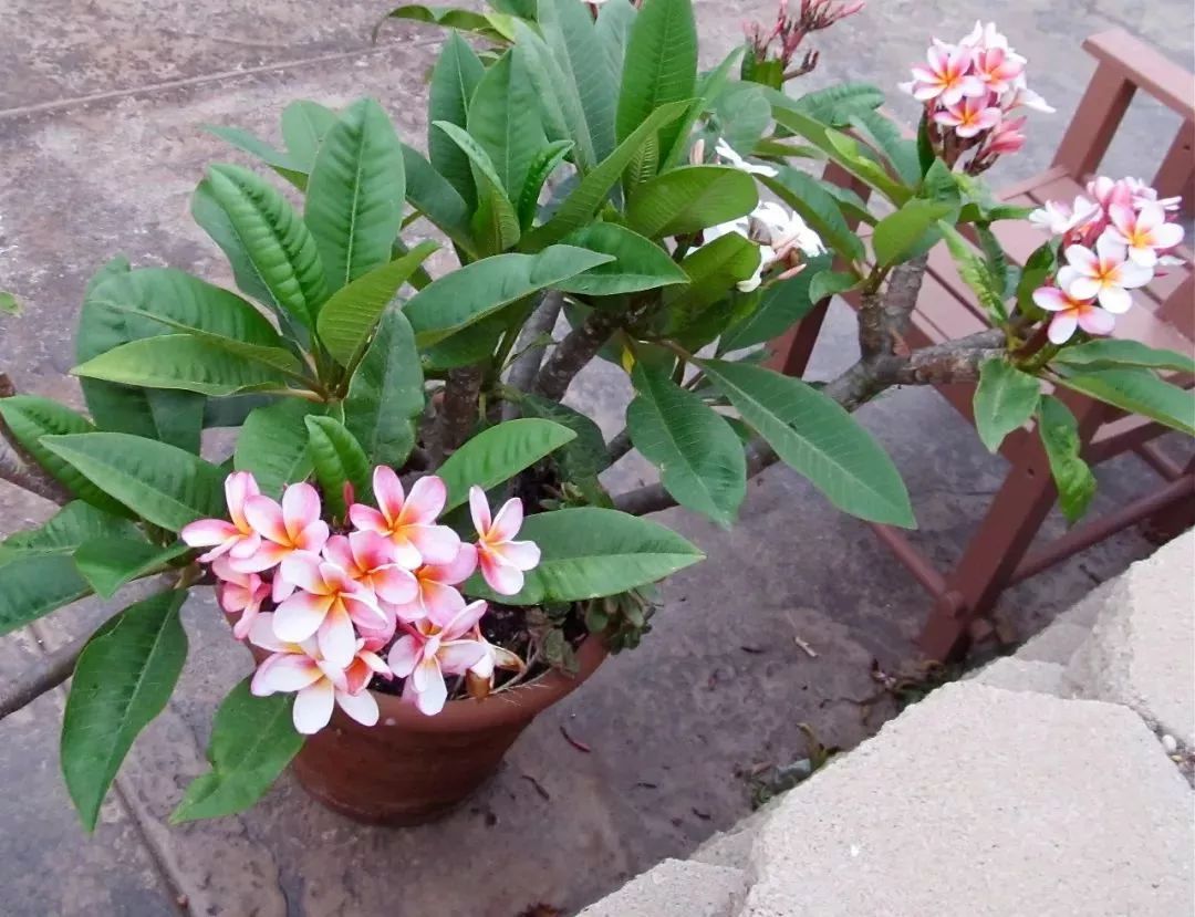 很少人会将鸡蛋花养成盆栽植物,因为它的植株比较高大,一般都是种在院子里的,不过如果在北方偏冷的地方,就只能养成盆栽,冬天温度低,7度以下就需要搬到室内避免冻伤。