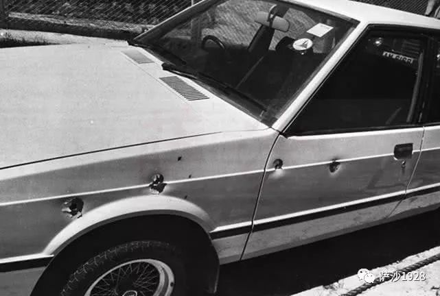 混战中,1发子弹射穿车门,击中女看门人的腹部。