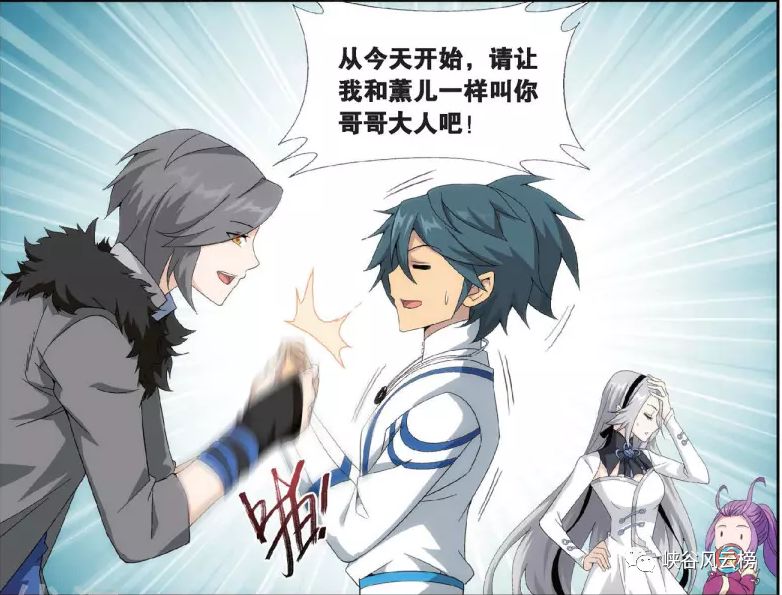 林修崖对萧炎说从今天开始他要像薰儿一样,叫萧炎哥哥大人。一旁的韩月学姐完全是被这林修崖弄得头疼,紫妍也是呆呆的吃着棒棒糖看好戏。