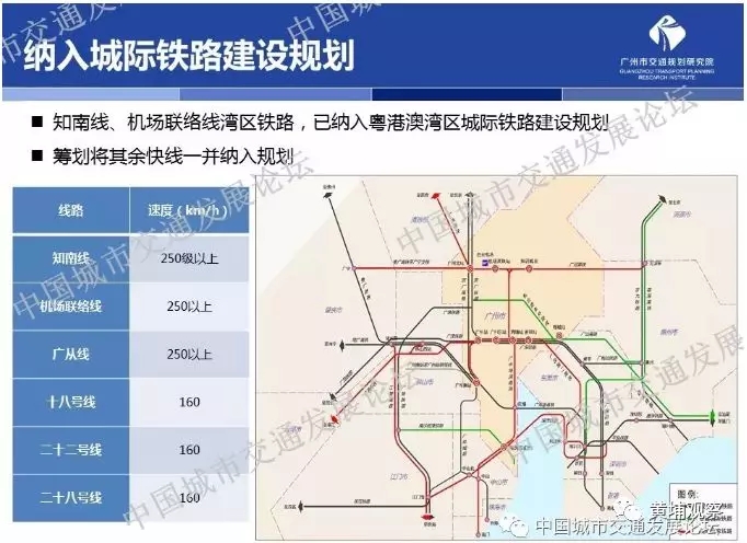 其中,包括三条时速160公里的线路:18号线(已开工)、22号线(已开工)、28号线(东西快线),以及三条时速250公里或以上的线路:知南线、机场联络线、广从线。