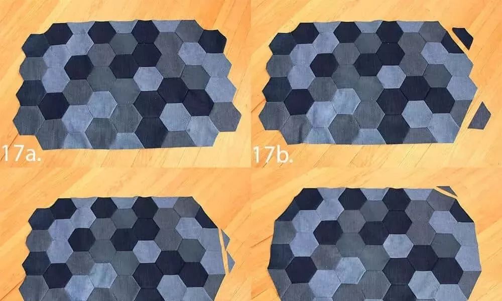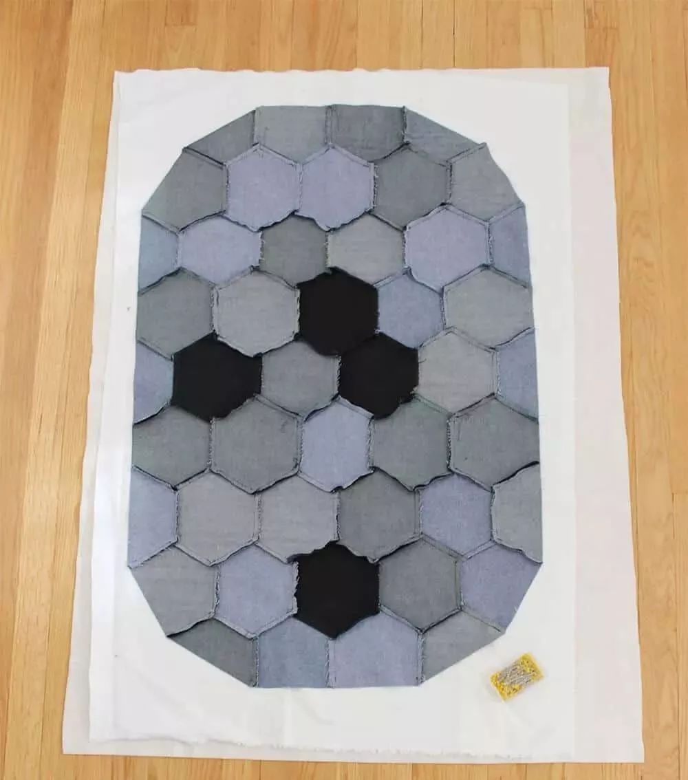 排列好,准备拼缝,如没缝纫机,此时用手缝也行。