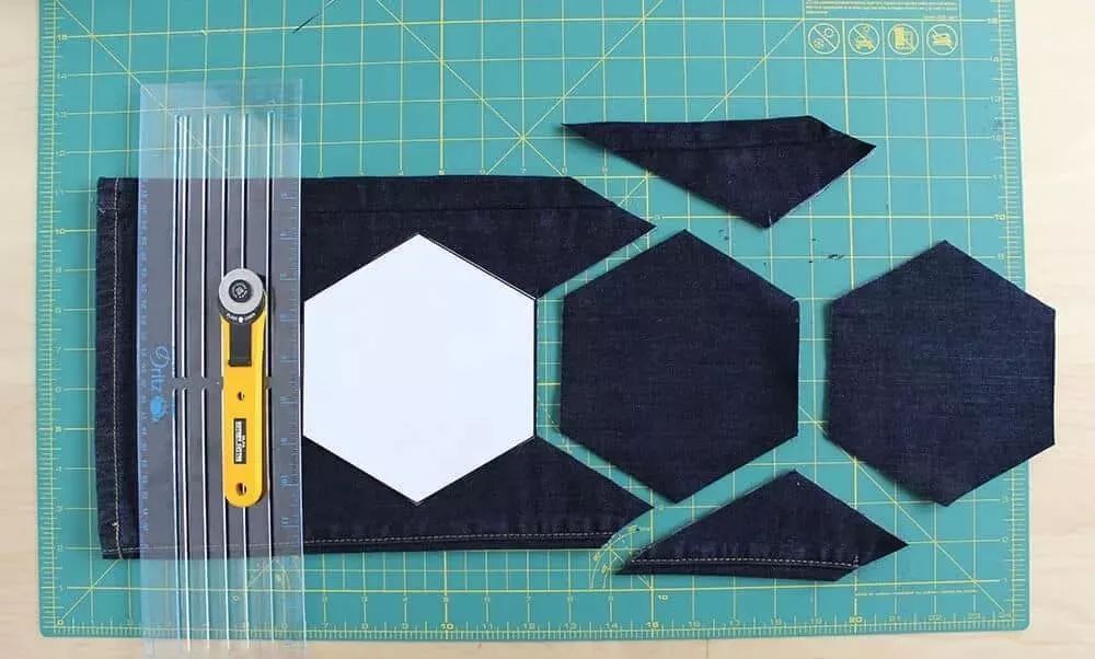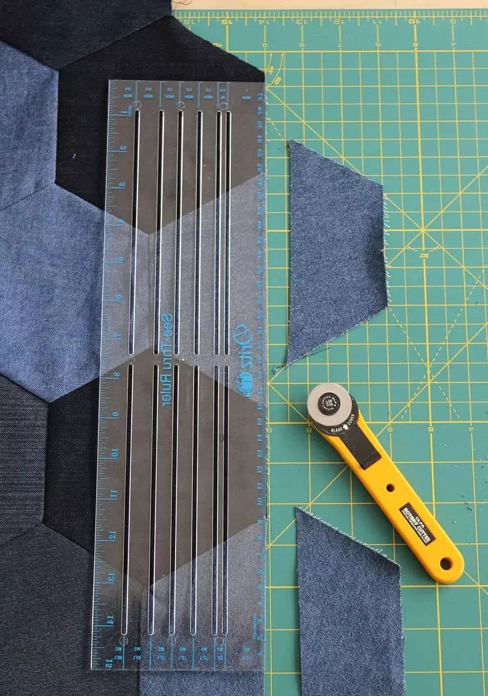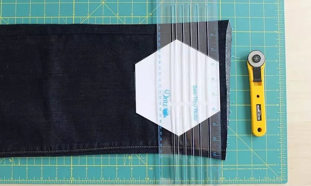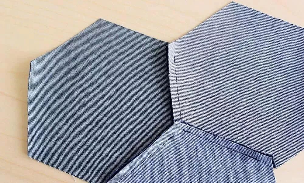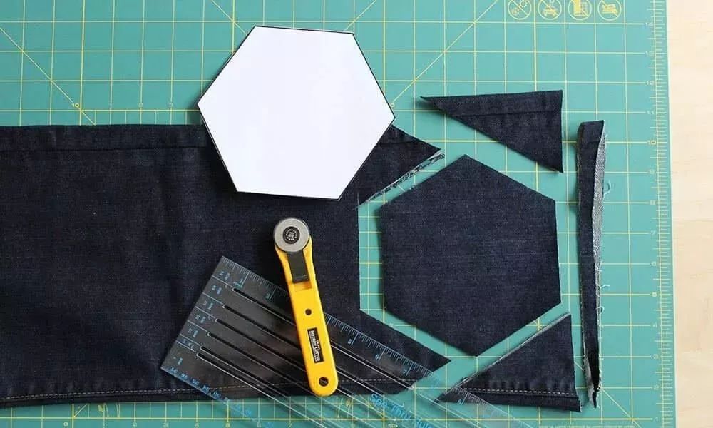 3块布用胶水粘合在一起,两侧裁剪掉边角形状同等宽度。