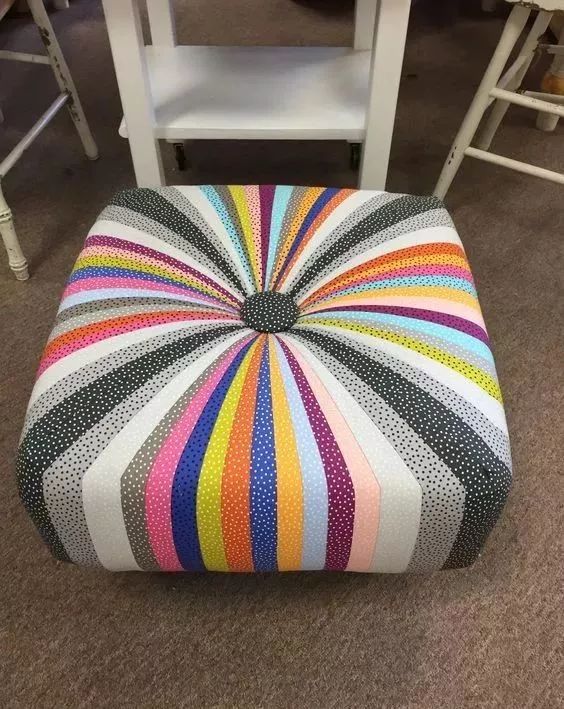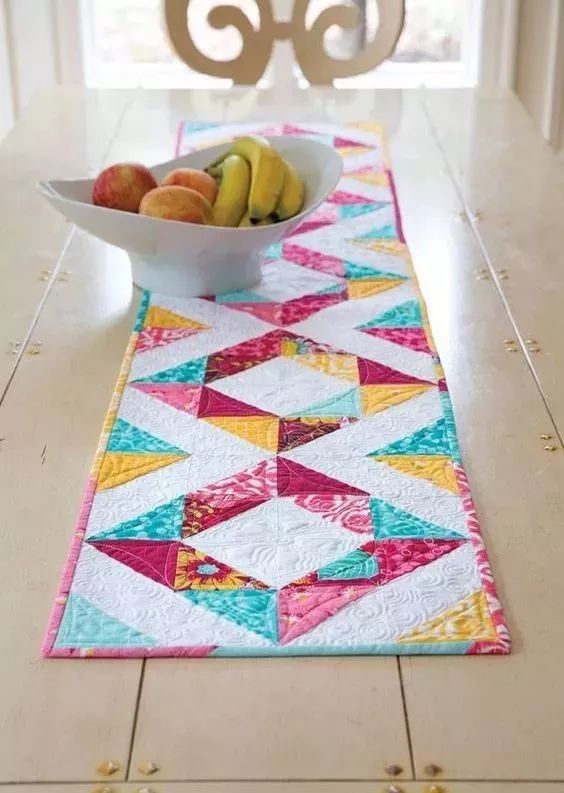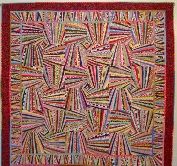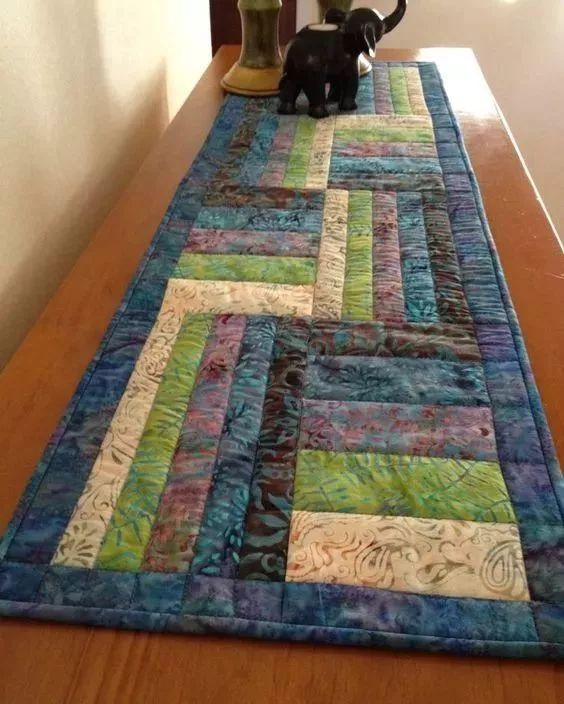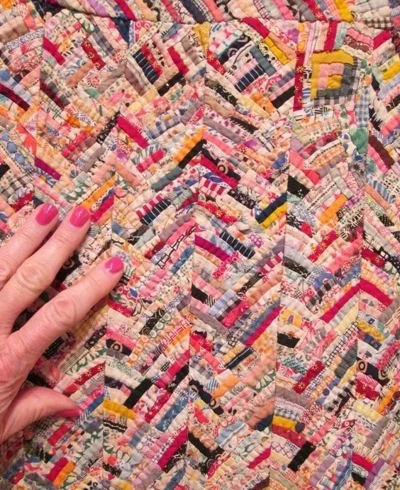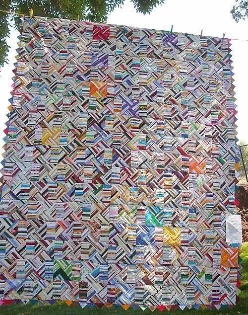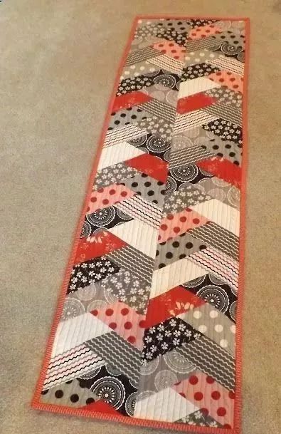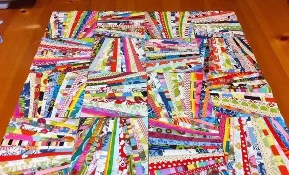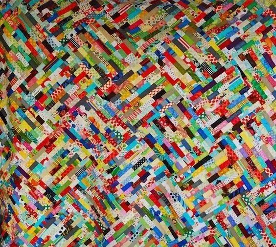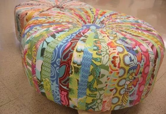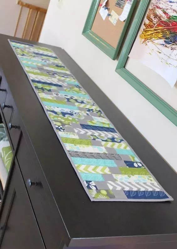 看上去好像是错综复杂的样子,又是一件伤神的作品啊?!不要让它的外表所欺骗,只要有规律地把碎布剪成一条条方形的条状,拼完又再剪成方形或各种形状拼接,餐垫,桌布,被子,枕套……美美又好用的家居用品都不用买了。