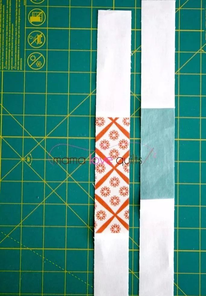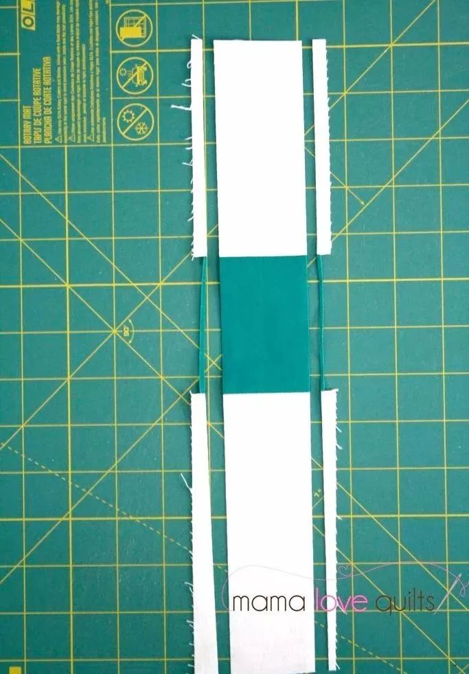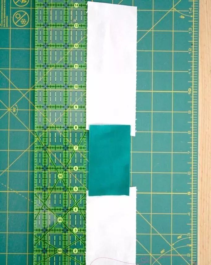 餐垫的拼缝法,仍然是先剪出方形的条状。