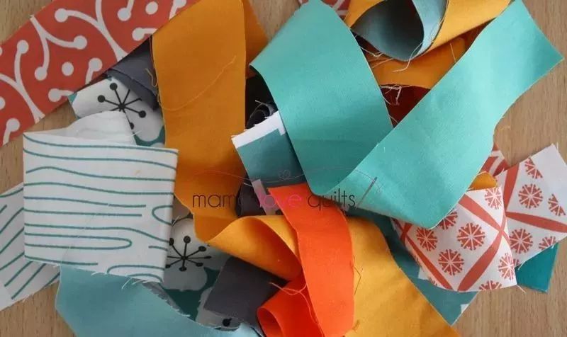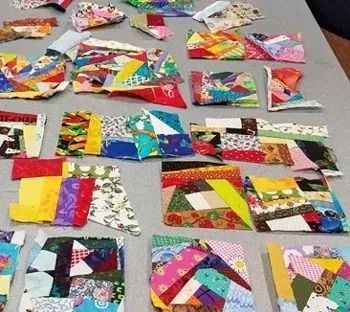 我们来看看做法,按照自己的思路,把碎布剪成不规则的形状,先用缝纫机把各块小布拼缝起来,之后剪成正方形。
