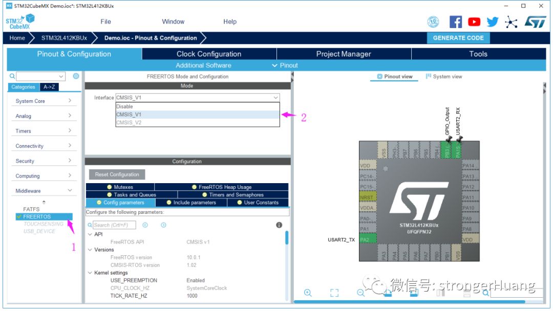 现在使用STM32CubeMX工具,就不需要这么繁杂的移植工作,只需轻松几步就能让FreeRTOS跑起来。