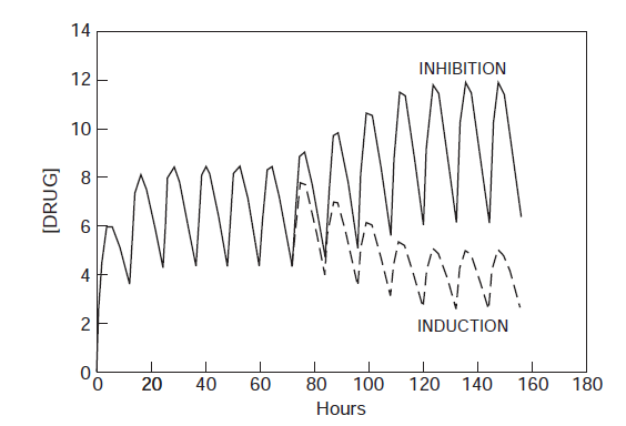 最糟糕的药物相互作用: 药物清除率CLf升高à如不升高剂量à治疗失败