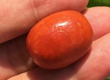 红种蜜蜡俗称樱桃红、水(丝)蜡,它色泽浓郁,热情奔放,鲜艳如樱桃果实,娇媚若绽放玫瑰。红种蜜蜡是相较白蜜和黄蜜更为珍稀的品种,尽管如此实际上红色蜜蜡是由黄色系蜜蜡演变而来,它是由黄色系蜜蜡外皮氧化产生包浆而颜色变深导致的。
