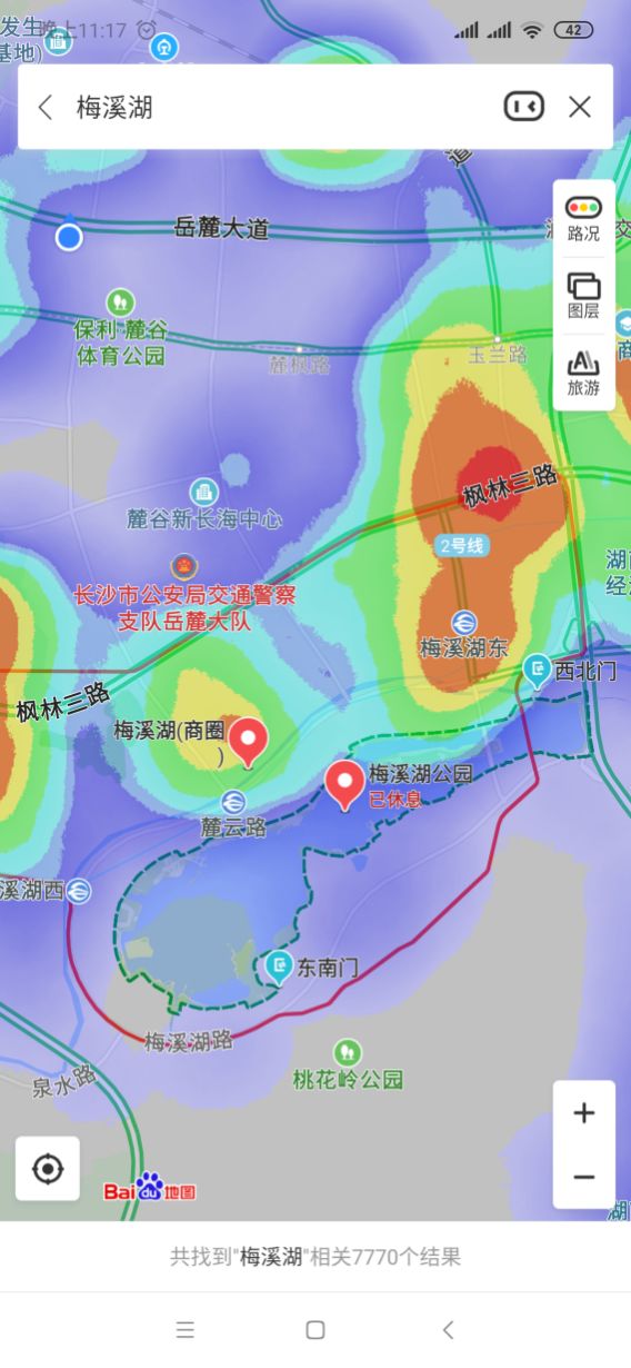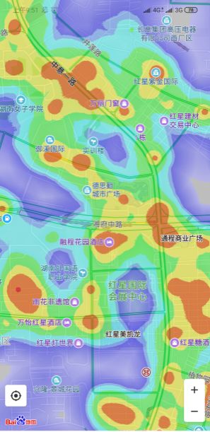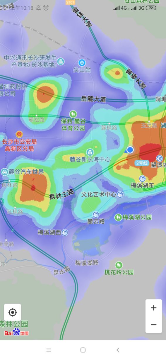 百度热力图看看长沙近况,主要是长沙市民在工作时间段和睡眠时间段各区域人口密度对比。