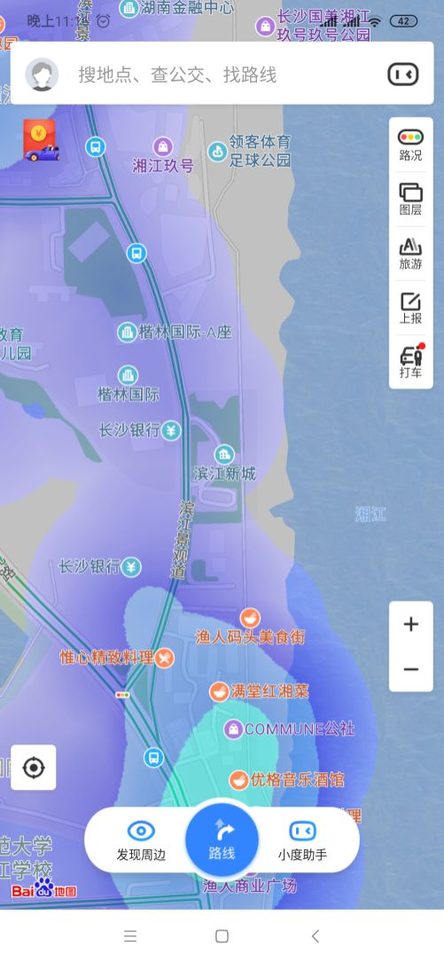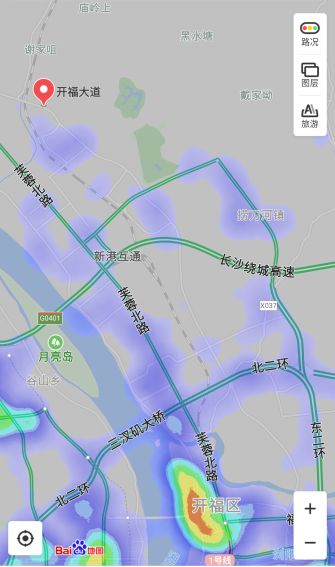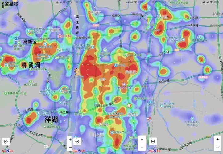 洋湖相比星沙,热力图颜色暗淡了许多,说明人口密度较小。
