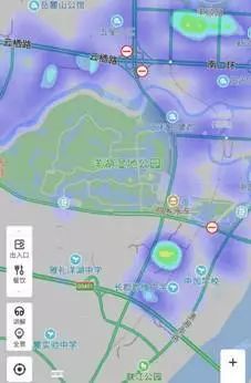 在晚上,梅溪湖热力图依然有较大片的高亮区域,比如梅溪湖东站地铁线到望城坡地铁线沿线的周边住宅,还有文化艺术中心的周边住宅区。