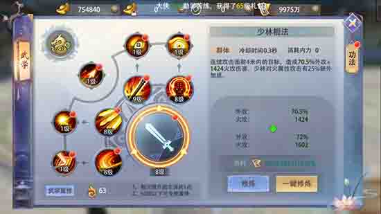 少林武学讲究强筋骨、重武学,一招一式之间无不暗藏玄机。少林弟子的主要武器为棍,招式套路多变难以捉摸,杀伤力惊人。但却缺乏有效的位移技能,在实战中经常充当冲锋陷阵,保护队友的角色,是值得信赖的团队核心力量。