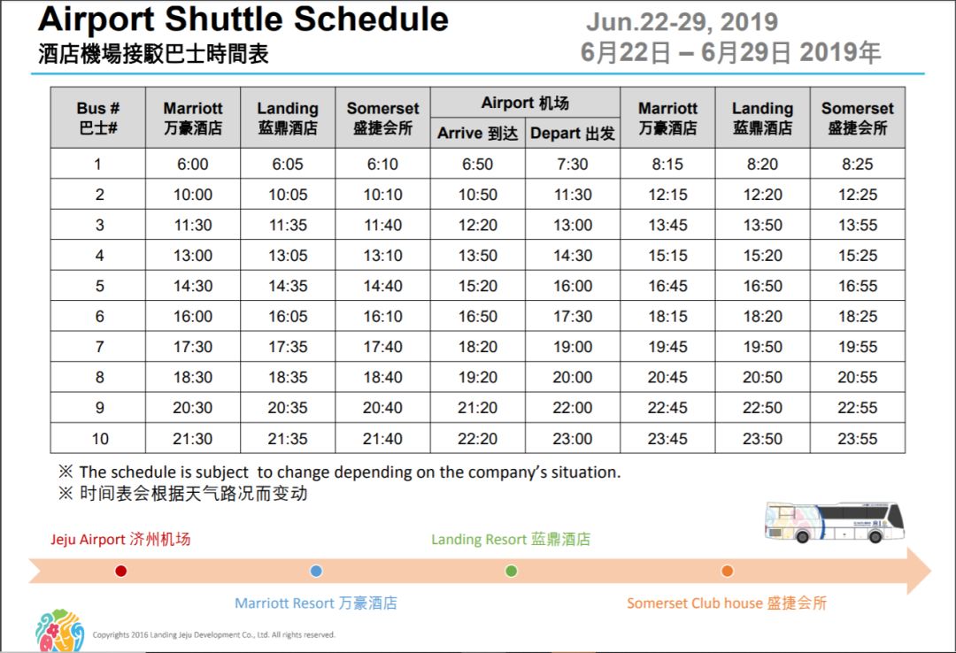 -六月份APPT济州站机场巴士接驳车信息,附官方赛程表