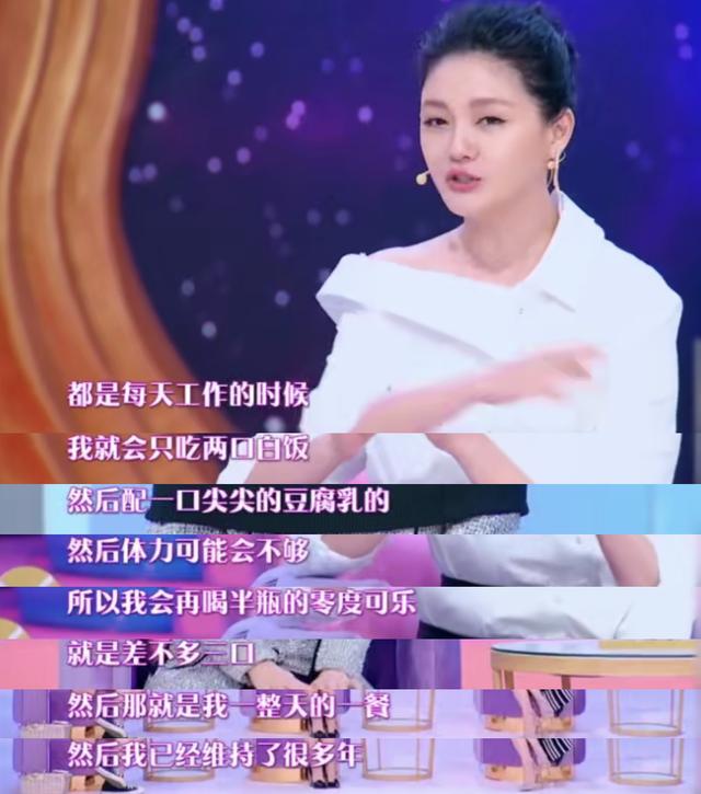 拍电影时,体重保持在42公斤。当制作电视剧或主持节目时,体重也控制在44.4公斤。它甚至精确到小数点。真是太残忍了!_____