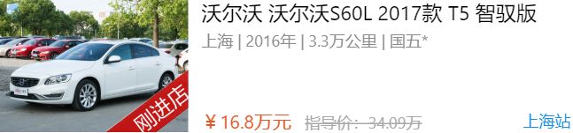4)沃尔沃算是高端品牌,空间以及驾乘舒适性都不错,安全性更是行业内公认内,此款车型新车指导价34万多,现在只要差不多五折的价格就能买到,综合性价比高。