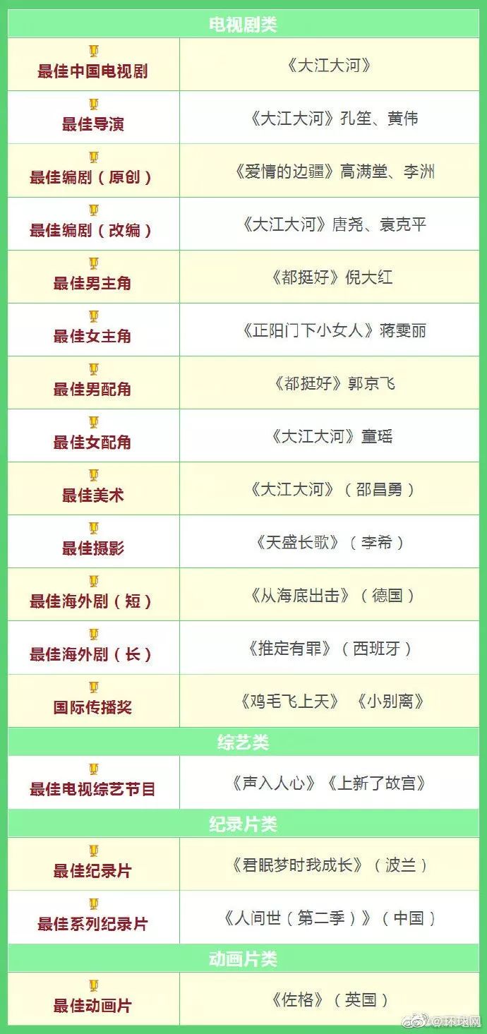 完整获奖名单: