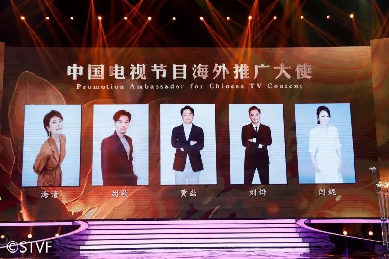 同时,海清、胡歌、黄磊、闫妮、刘烨五位实力演员担任“中国电视节目海外推广大使”。闫妮表示:“用作品告诉世界一个真实的中国 我们责无旁贷。”刚刚参与了戛纳电影节的胡歌则称:“希望未来能参与更多的合拍片,在国际上见到更多中国人的面孔。”