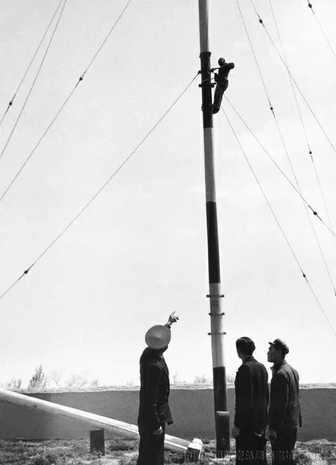 20世纪50年代,中苏航空公司工作人员在戈壁滩上架设电台