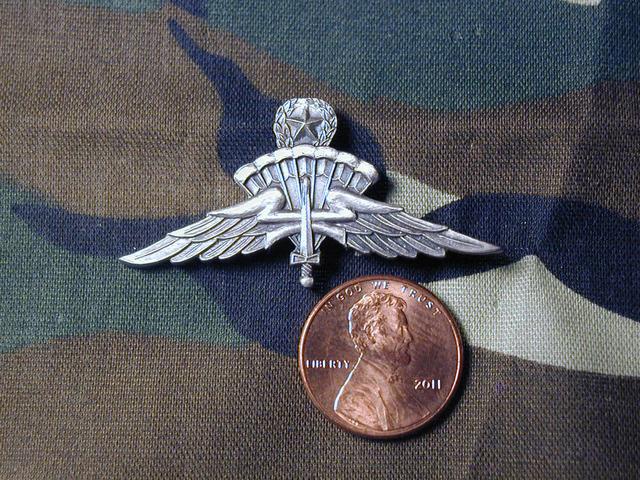 伞兵在陆军空降学校毕业,完成军事自由降落跳伞课程可获得初级高跳低开技能章