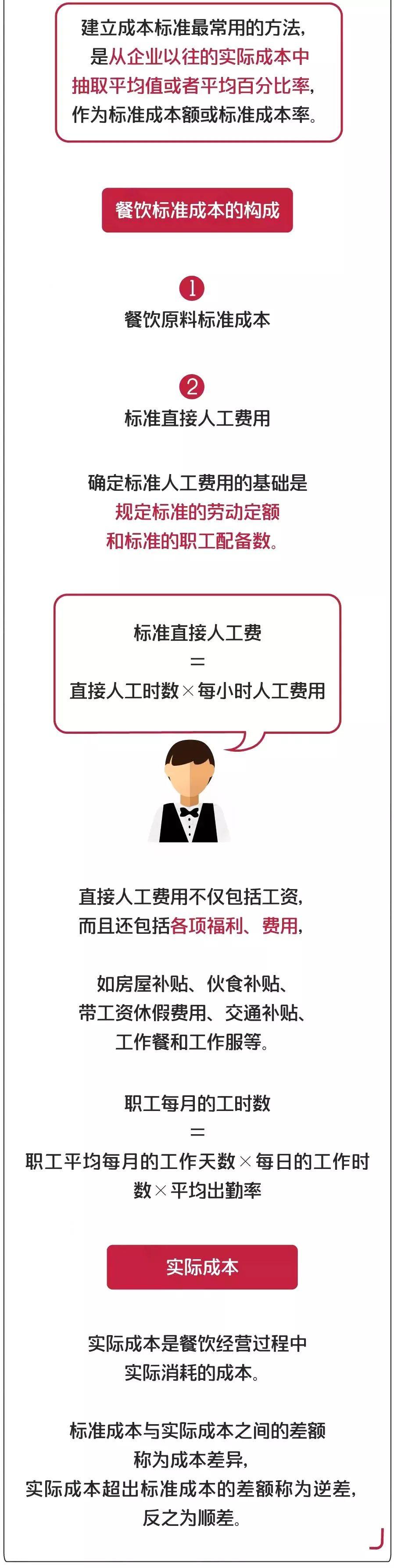 餐饮成本的构成比较多,因为有变量因素的存在,计算起来颇为复杂。只有了解每一个成本的构成和意义,在实际经营中才能把控好成本关,做到心中有数。懂得算账,才能做一个精明的餐饮老板。看到这份清单是否觉得很复杂呢?开餐厅并非那么简单的事情,先了解再行动,你才能走得更稳更好!