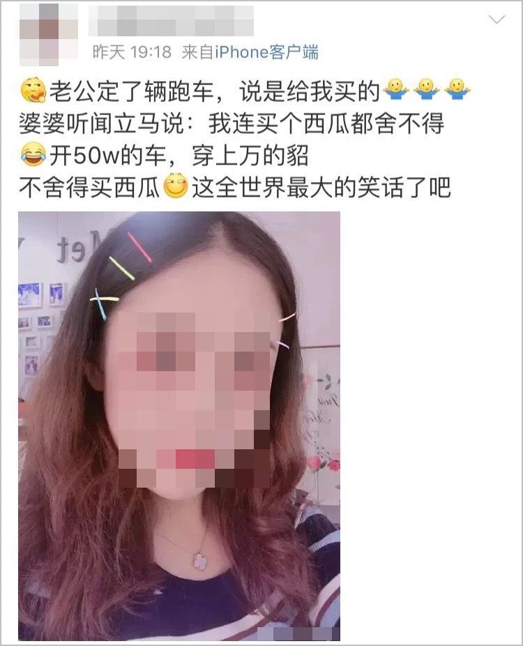 6月12日,当事女士微博被网友找到,发现该女子于6月11日晚发布了一条动态,称“老公定了辆跑车,说是给我买的,婆婆听闻立马说:我连买个西瓜都舍不得。开50w的车,穿上万的貂,不舍得买西瓜,这全世界最大的笑话了吧。”该女子此举被质疑“诈捐”。同日,当事女子微博回应称,其父在2014年接受抢救,“直到目前一直是个病人”,并提到父亲有资格申请水滴筹救助。6月16日晚,该女子微博回应,愿把在水滴筹筹到的8547元通过平台退还。