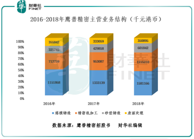 熔模铸造是公司主要的收入来源。该业务分部从2016年的11.52亿港元增至2018年的15.81亿港元,年复合增速为17.15%,高于同期全球熔模铸造市场规模年复合增速的3.72%。