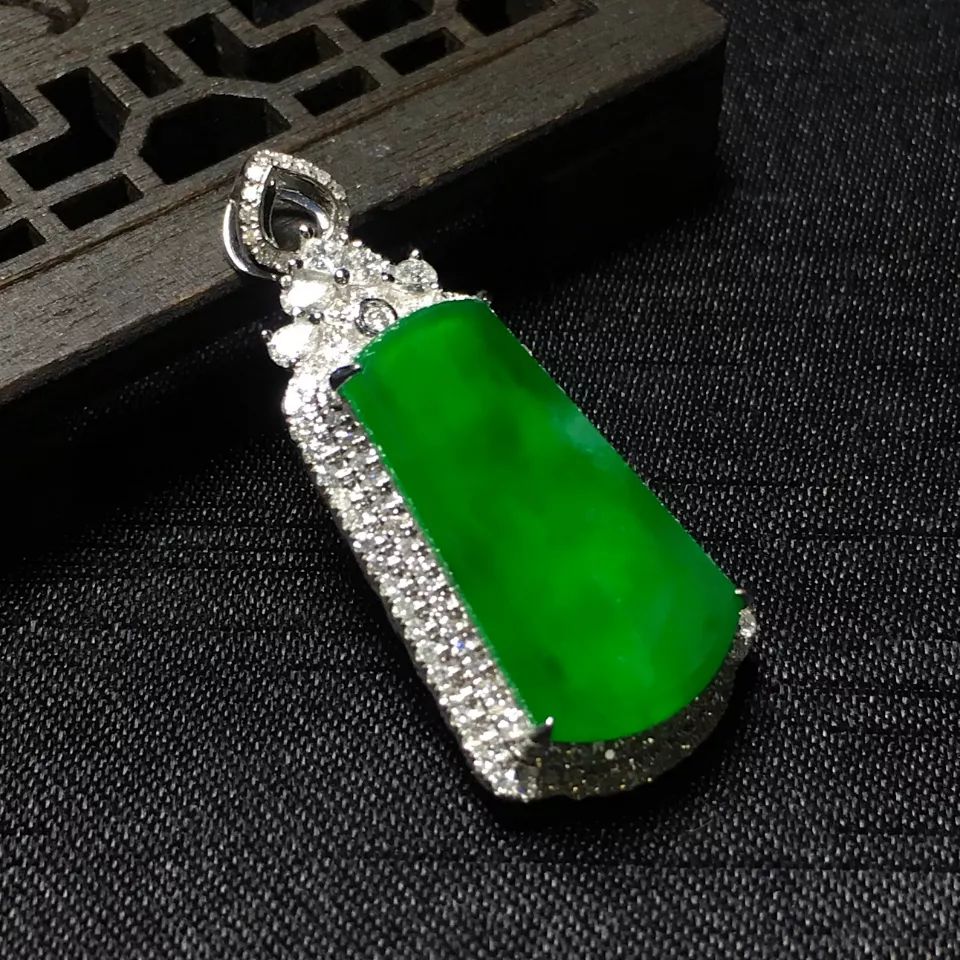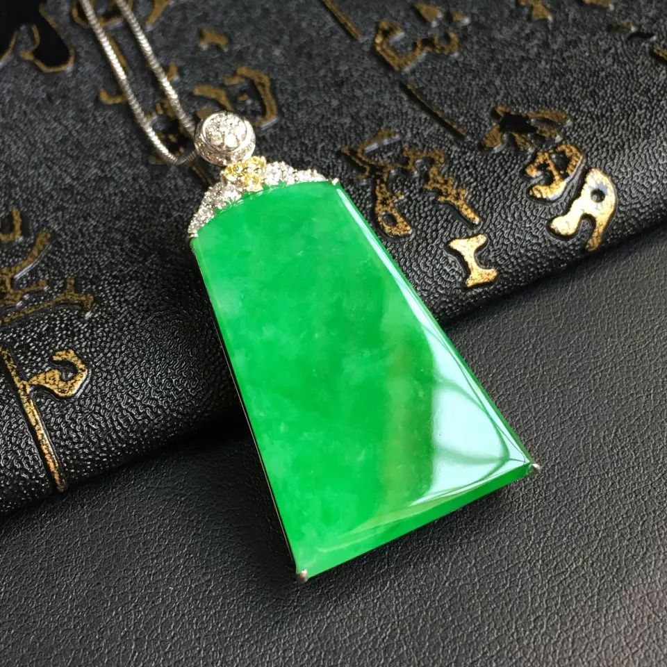 镶白18k金钻石糯冰种翠绿无事牌